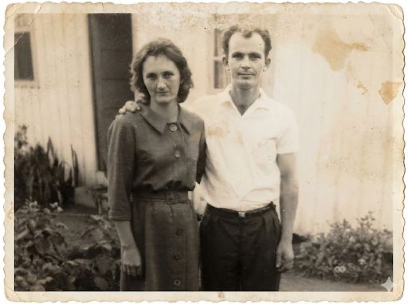 Dona Eva e Sr. Elmar começam a assar pães no forno a lenha, nos fundos de casa, para serem vendidos na feira da Proeb, em Blumenau-SC.